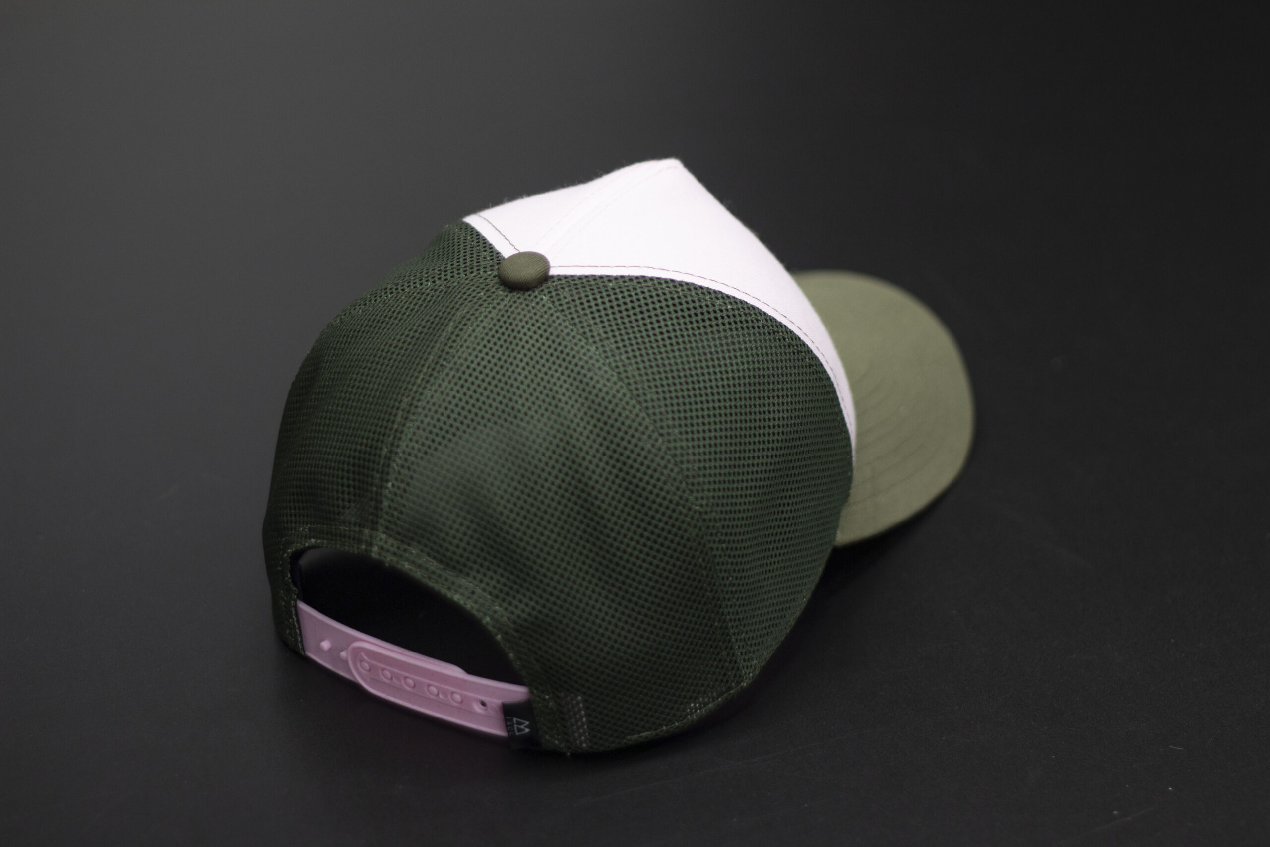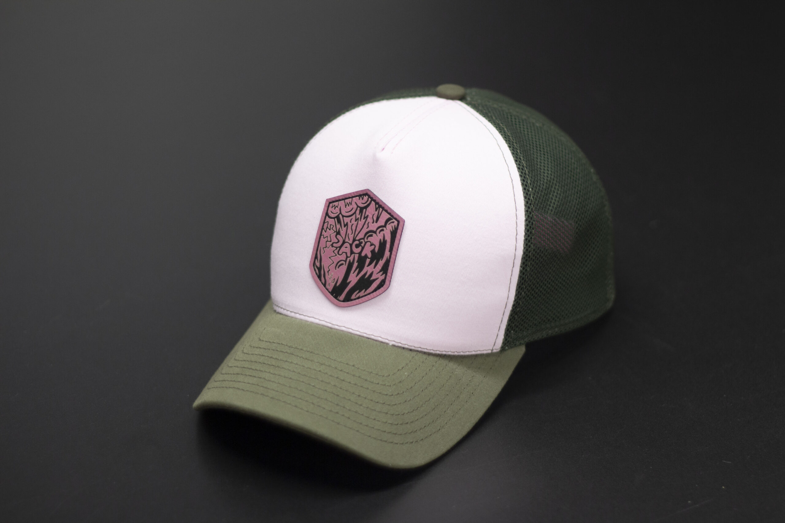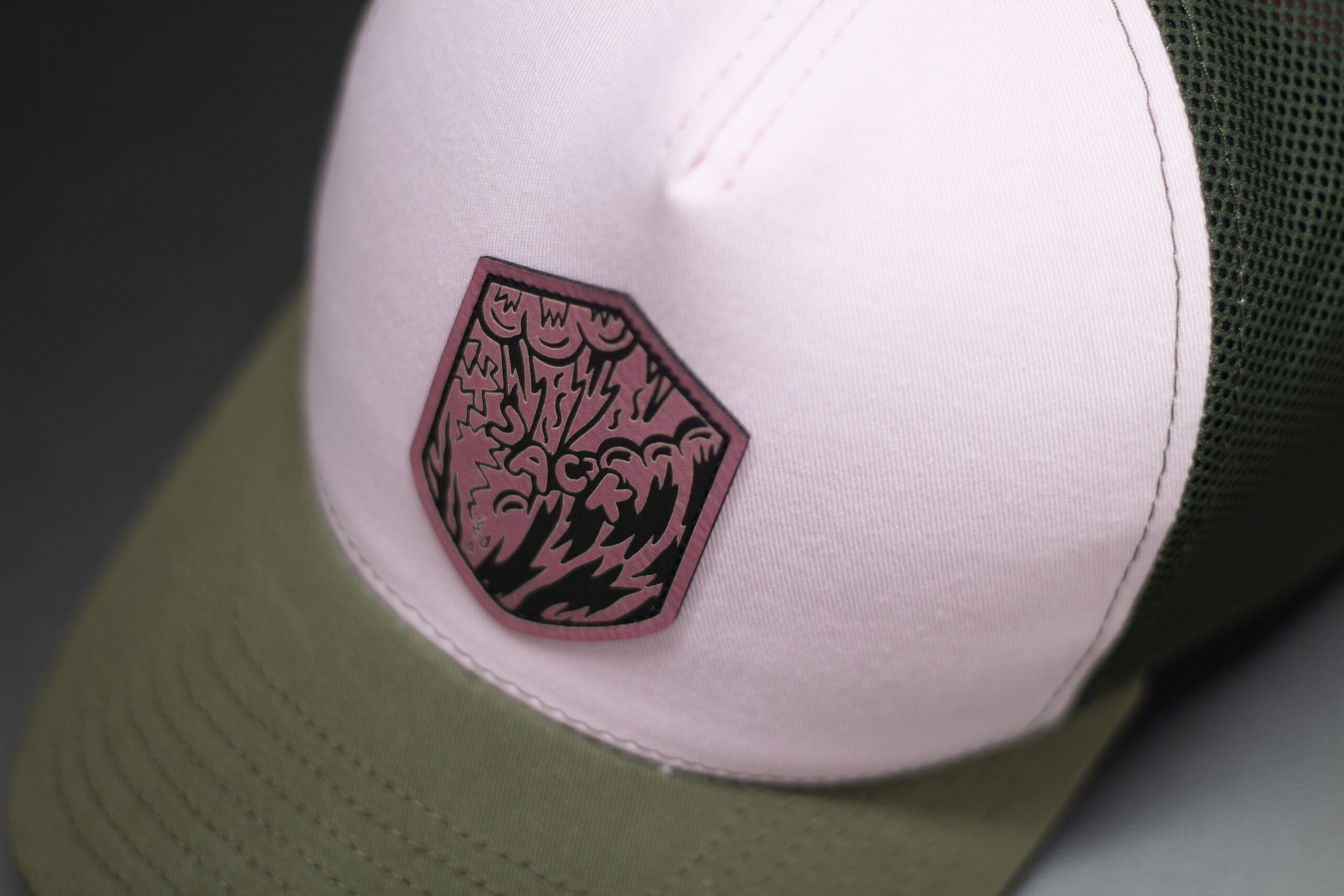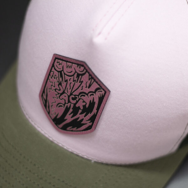 Czapka baseball w kolorze różowym z oliwkową siatką i oliwkowym daszkiem. Na froncie znajduje się naszywka w kształcie tarczy z grafiką, która nadaje czapce nowoczesny, streetwearowy charakter. Połączenie różu z oliwką i mocnym akcentem kolorystycznym sprawia, że model wyróżnia się w codziennych stylizacjach. Idealna na lato, wyjazdy, rower i codzienne noszenie.