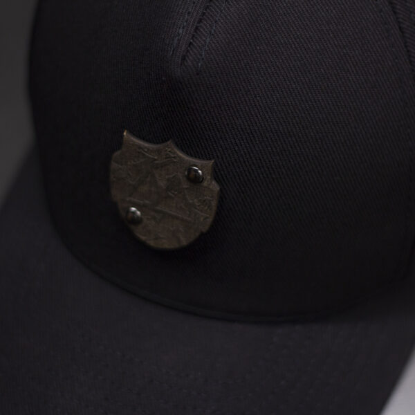 Czapka baseball w pełnej czerni — czarna czasza, czarna siatka i czarny daszek. Na froncie znajduje się drewniany emblemat w kolorze palisander, mocowany nitami. Głęboki, ciemny odcień drewna nadaje czapce elegancki, luksusowy charakter. Minimalistyczna, mocna wizualnie, premium — idealna do codziennych stylizacji i streetwearu.