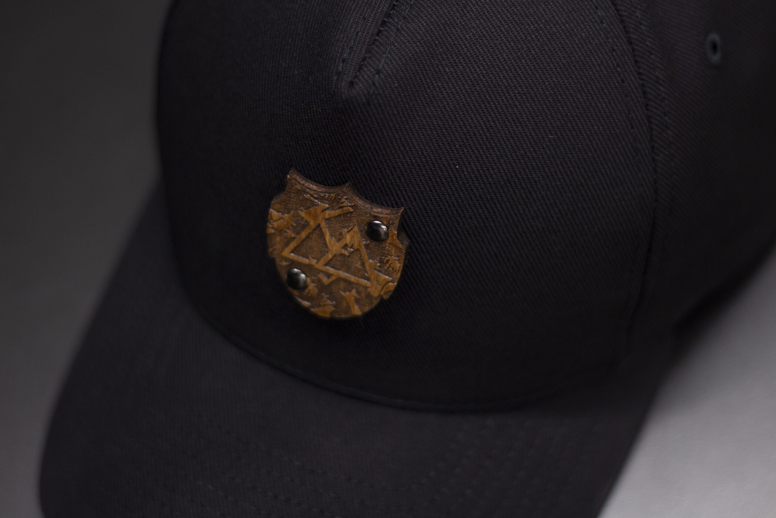 - drewniany emblemat nitowany — premium detal