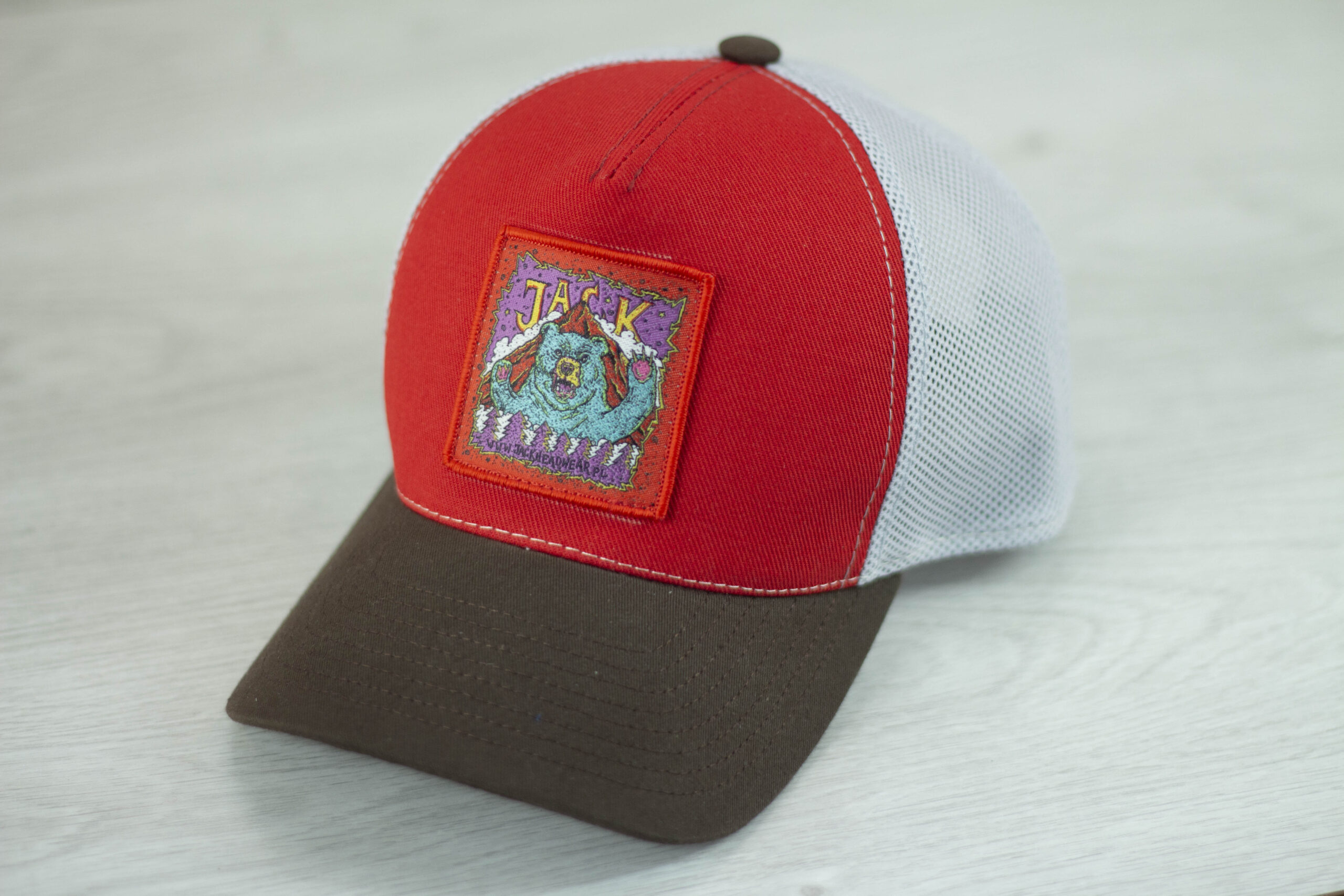 - Na froncie metka jack headwear bear wykonana na ekoskórze.
