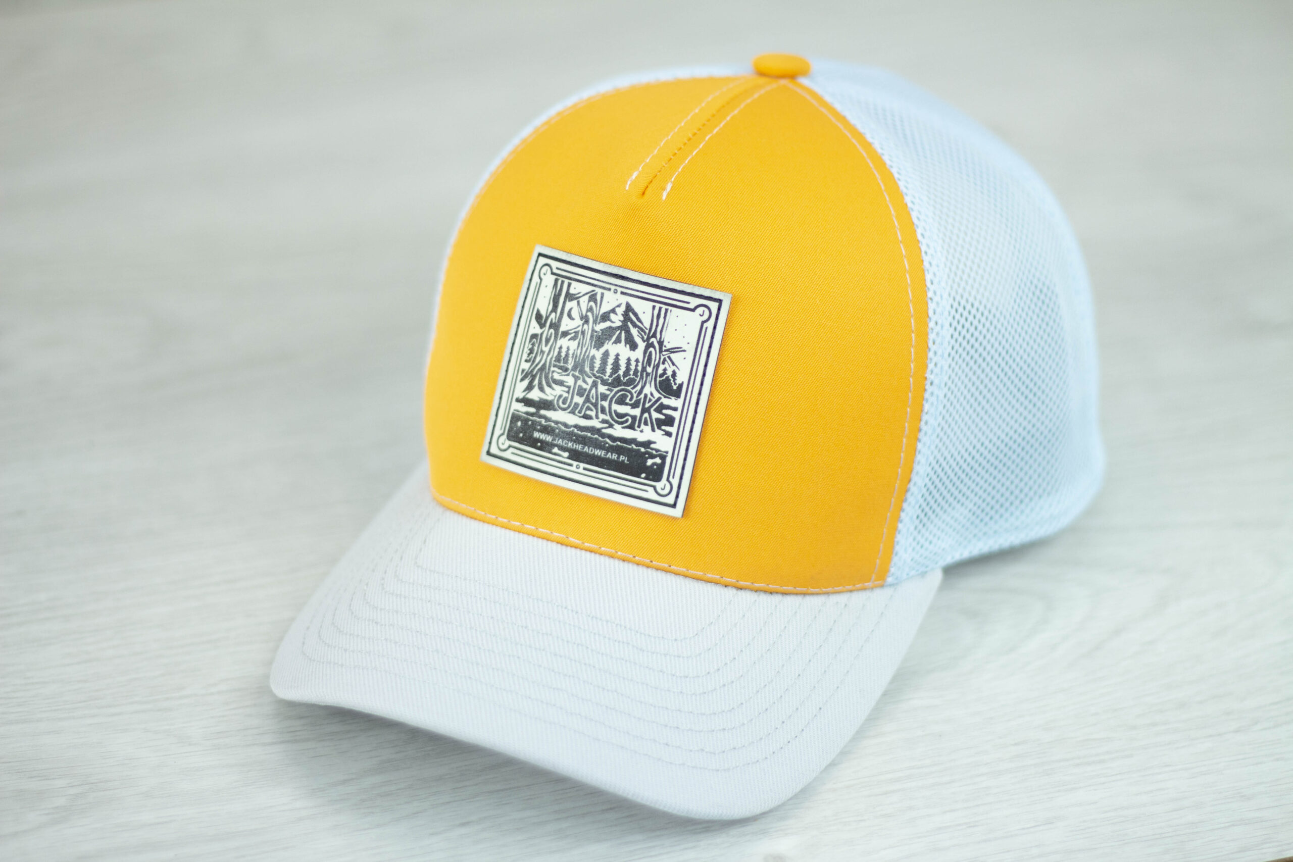 - Na froncie metka jack headwear forest wykonana na ekoskórze.